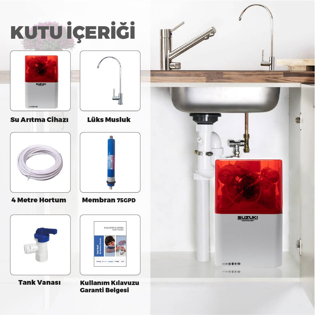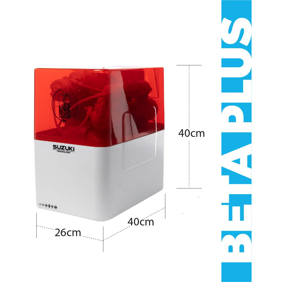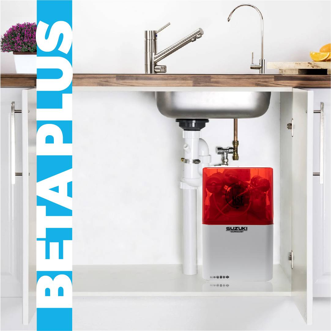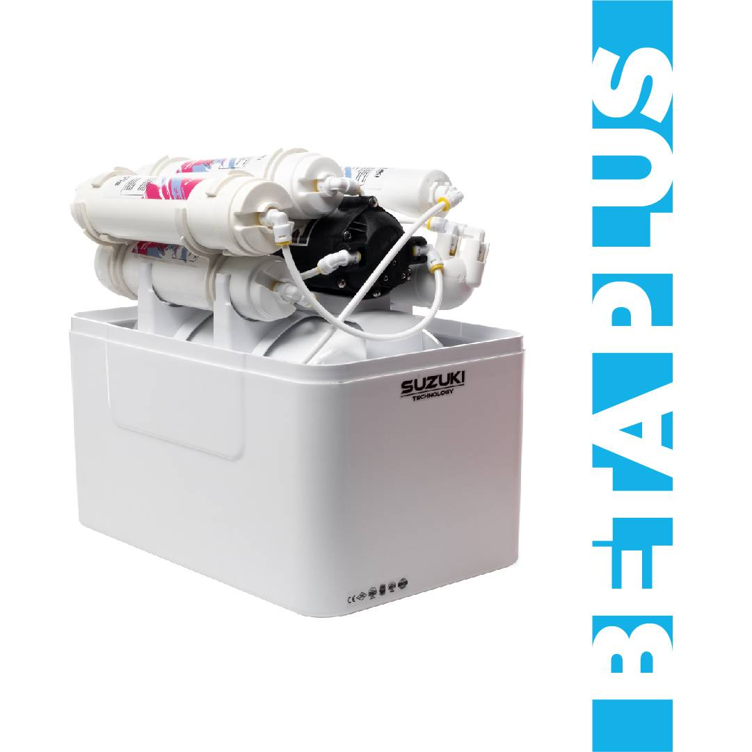 SUZUKI TECHNOLOGY AİLESİNİN KIRMIZI VE BEYAZ RENKLERDEN OLUŞAN BETA PLUS MODELİ TOPLAM 5 FİLTREDEN OLUŞMAKTADIR. CİHAZ ŞEBEKE BASINCI 2,5 BAR ALTINDA OLAN YERLEŞİM YERLERİNİN (TÜRKİYE’DE BULUNAN KONUTLARIN SADECE % 2 ‘ SİNDE ŞEBEKE 2,5 BAR ALINDADIR.) KULLANIMI İÇİN TASARLANMIŞTIR. ÜRÜN İÇERİSİNDE 8 LT METAL TANK BULUNMAKTADIR. TERS OSMOZ TEKNOLOJİSİ İLE ÇALIŞMAKTADIR.